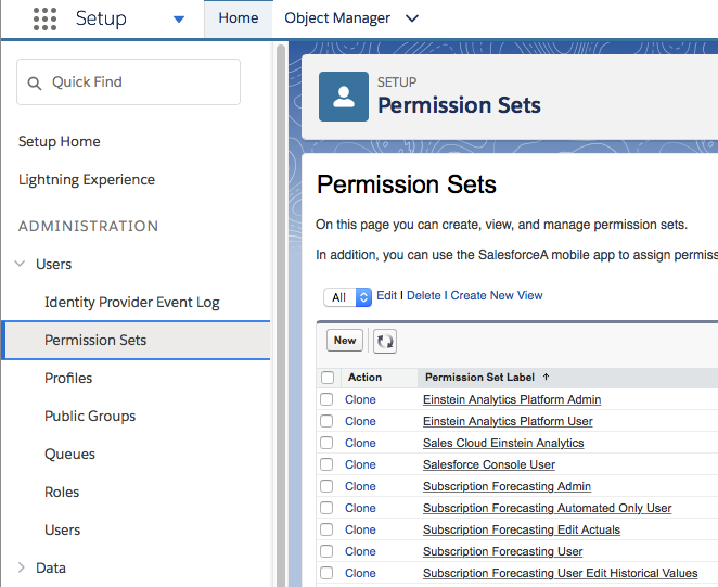 - Navigate: ADMINISTRATION => Users => Permission Sets and click on the permission sets (Subscription Forecasting Admin)