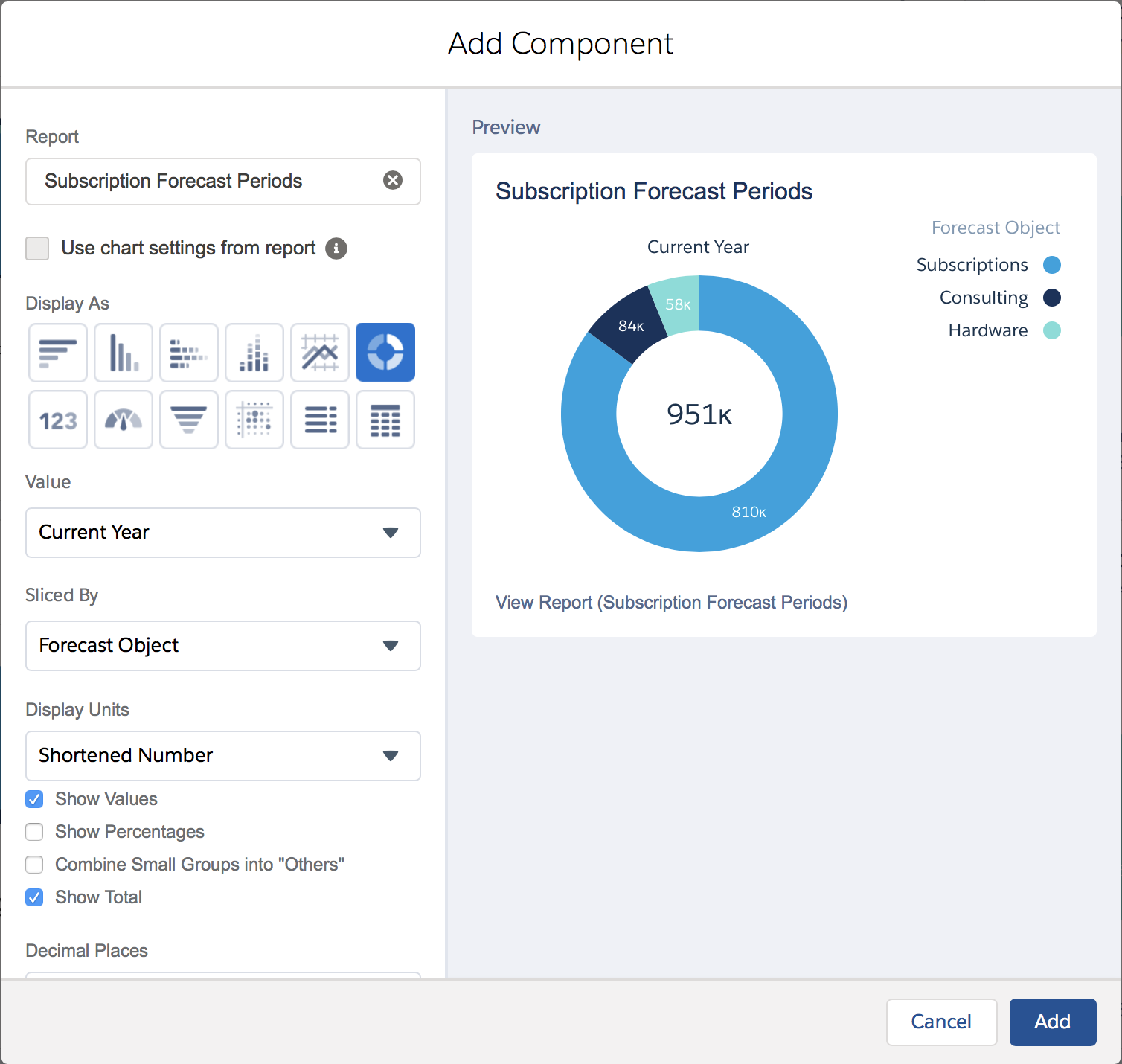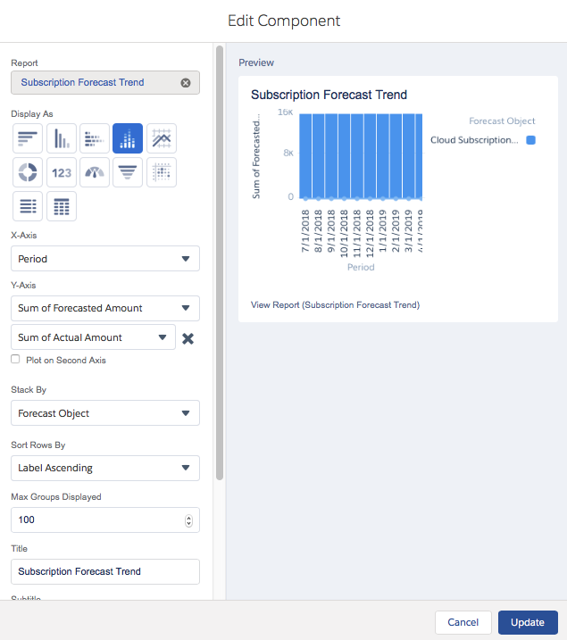 - All Recurring filter in the forecast objects drop down list summaries all values for “Recurring” forecast objects.